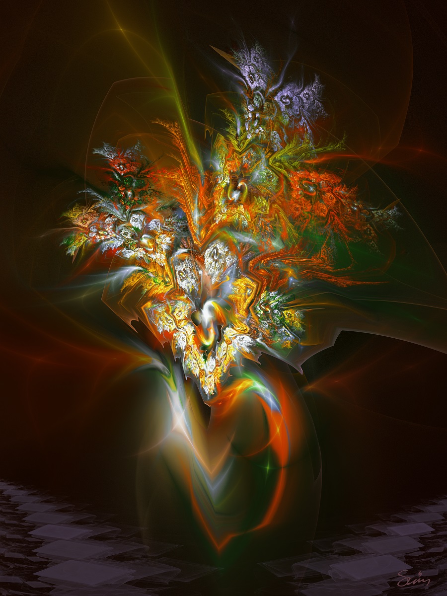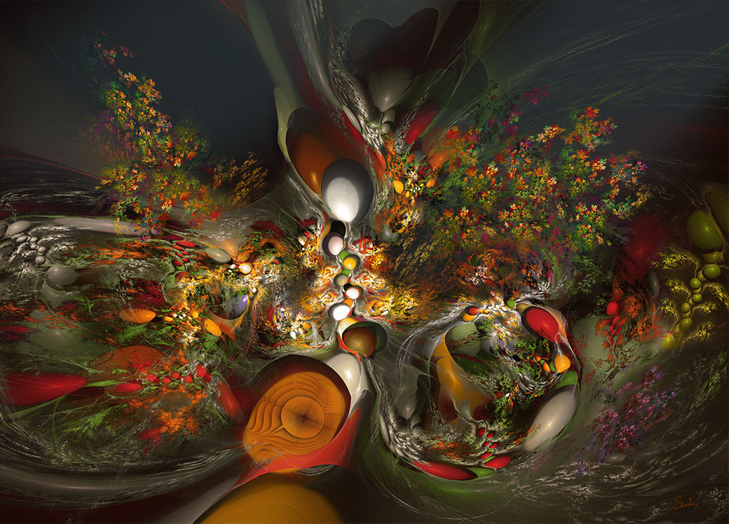 A képzőművészeti alkotások modelljei általában emberek, tájak, vagy egy csendélet. Az alábbi képeket viszont matematikai eljárásokkal előállítható fraktálok inspirálták. E végtelenül bonyolult alakzatok annyira változatosak, hogy kiválóan alkalmasak műalkotások modelljeinek. Világunk csodálatos forma és színkavalkáddal nyűgözi le az arra fogékony szemlélőt. Legmélyebb titkai megfejtésében a matematika segít, melynek törvényei örök érvényűek és változatlanok. Az 'örök' itt szó szerint értendő, a matematika szabályai és ezzel együtt a fraktálok időtlenek, mindig is létezők, így örökké tartalmazzák mindannak a lenyomatát ami most körülvesz minket; a természet összes alakzatát; tájak, fák, levelek, indák, állatok, vagy akár emberek rajzolatát. E fraktál-mintázatokat most - a legújabb technika segítségével - képesek vagyunk a fraktál-térben megkeresni és megjeleníteni. Képeimet e különleges világ felfedezése inspirálta.